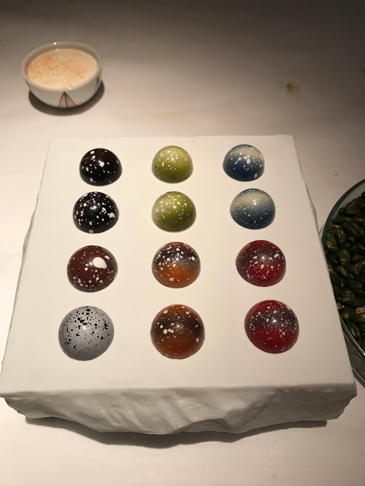 Another nice touch were the chocolates we got with our coffee/tea. The were infused with all the flavours the chef used in the menu. Peculiar, but not bad at all and a very nice touch to it!