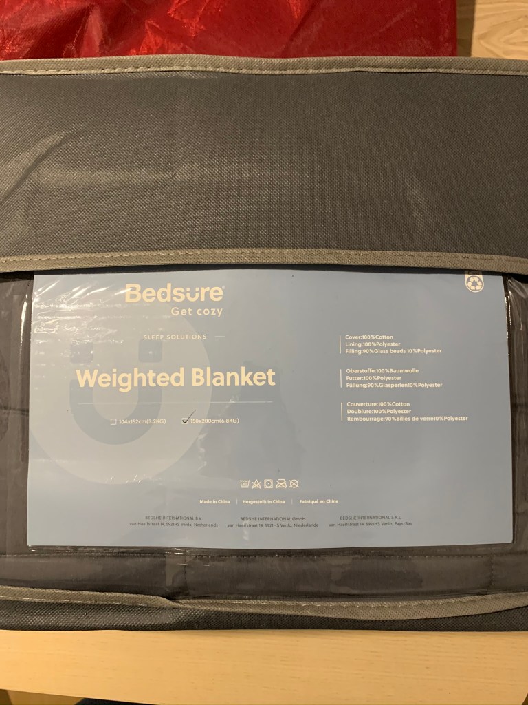 So I told Vittorio about some things I was curious about, or liked but not necessarily needed. And he gave me his “wishlist”. Flash forward to the day that package arrived for me. It was still several days before Christmas, but I couldn’t wait. The box said the weight is 8kgs and I joked to my friend: “if there’s an 8 kg kettlebell in there, I will throw it at his head“. Vittorio was like: “oh come on, we discussed this, and you said you were curious about this item“! I had to think hard.. But then it hit me! It was a weighted blanket!