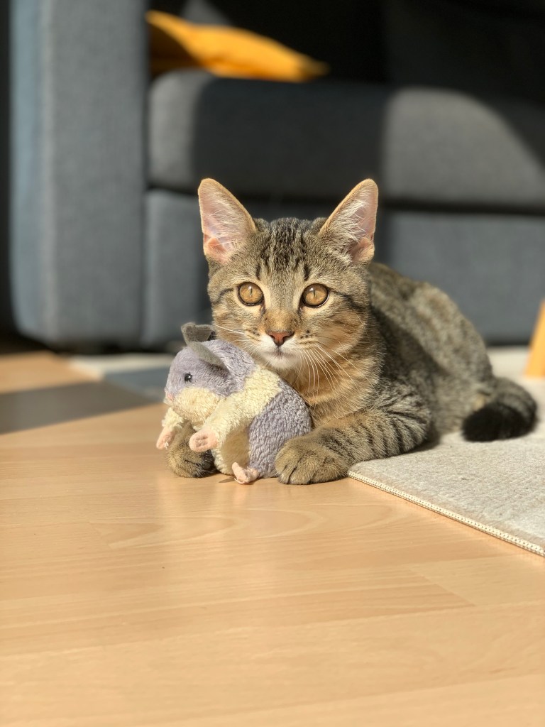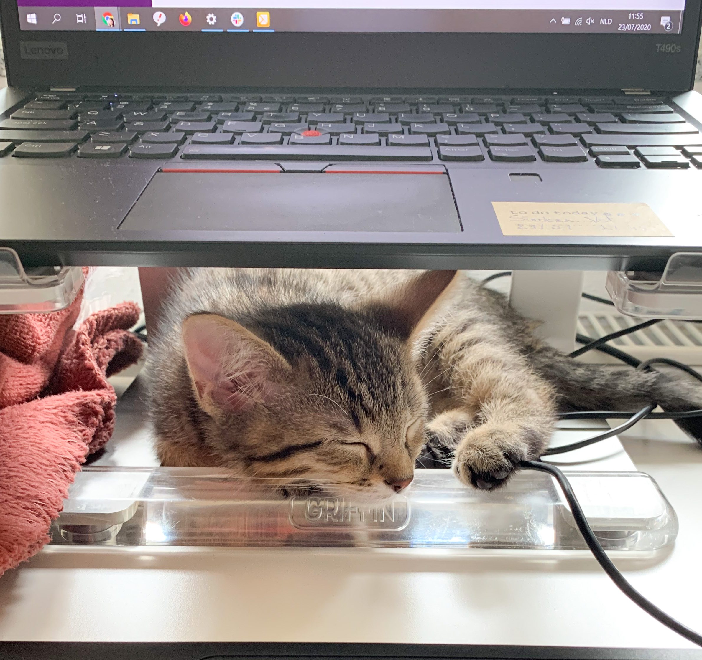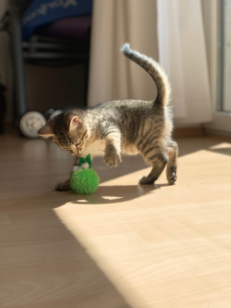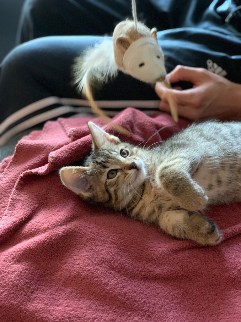 Flash forward to 16 July 2020, the day I brought him home. Instantly curious, exploring the house. Playing with his new toys. But also: sleeping next to us on the couch. The first night, I slept on the couch with him so Vittorio could get some sleep because he would be miaowing all the time.