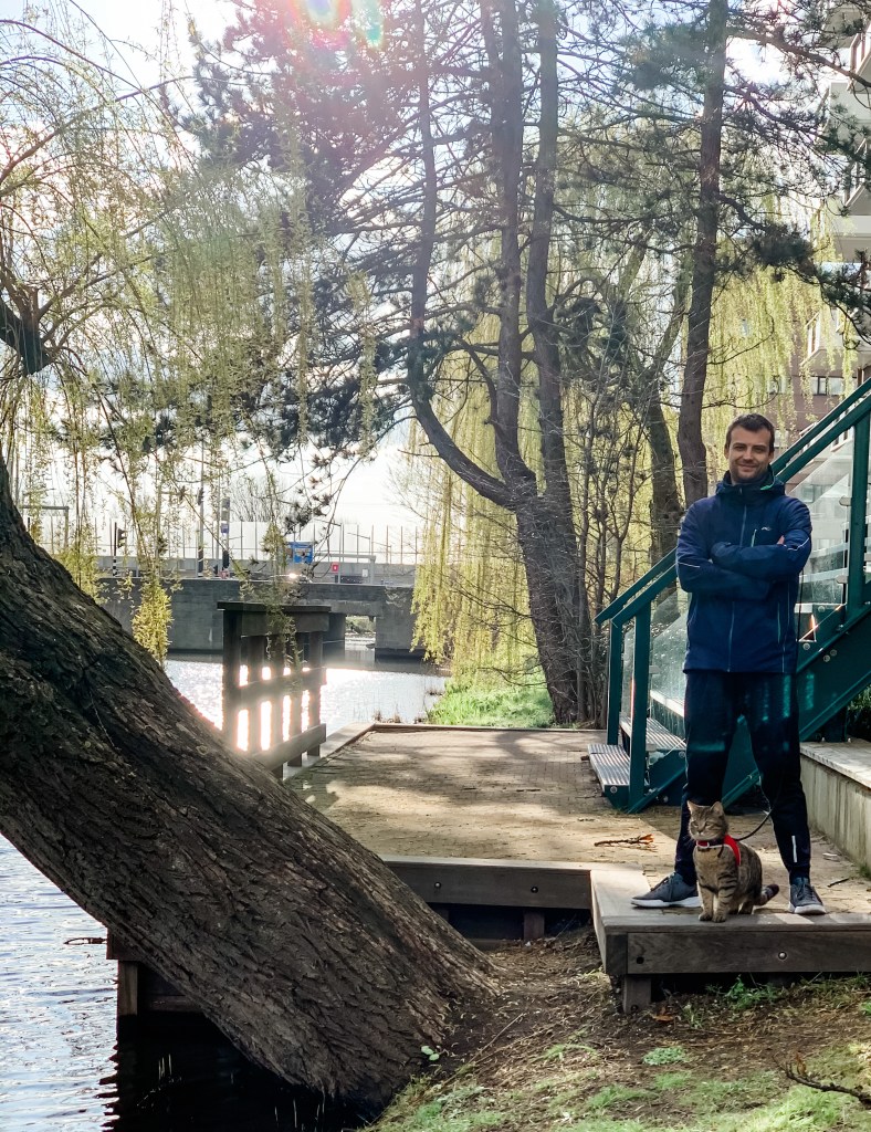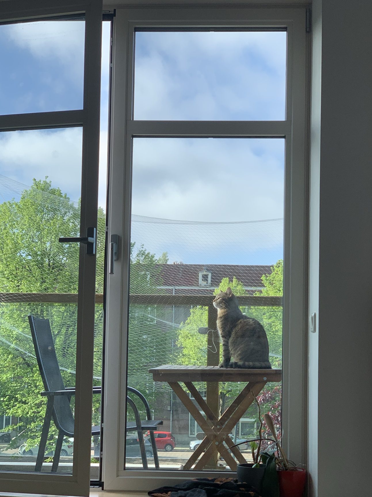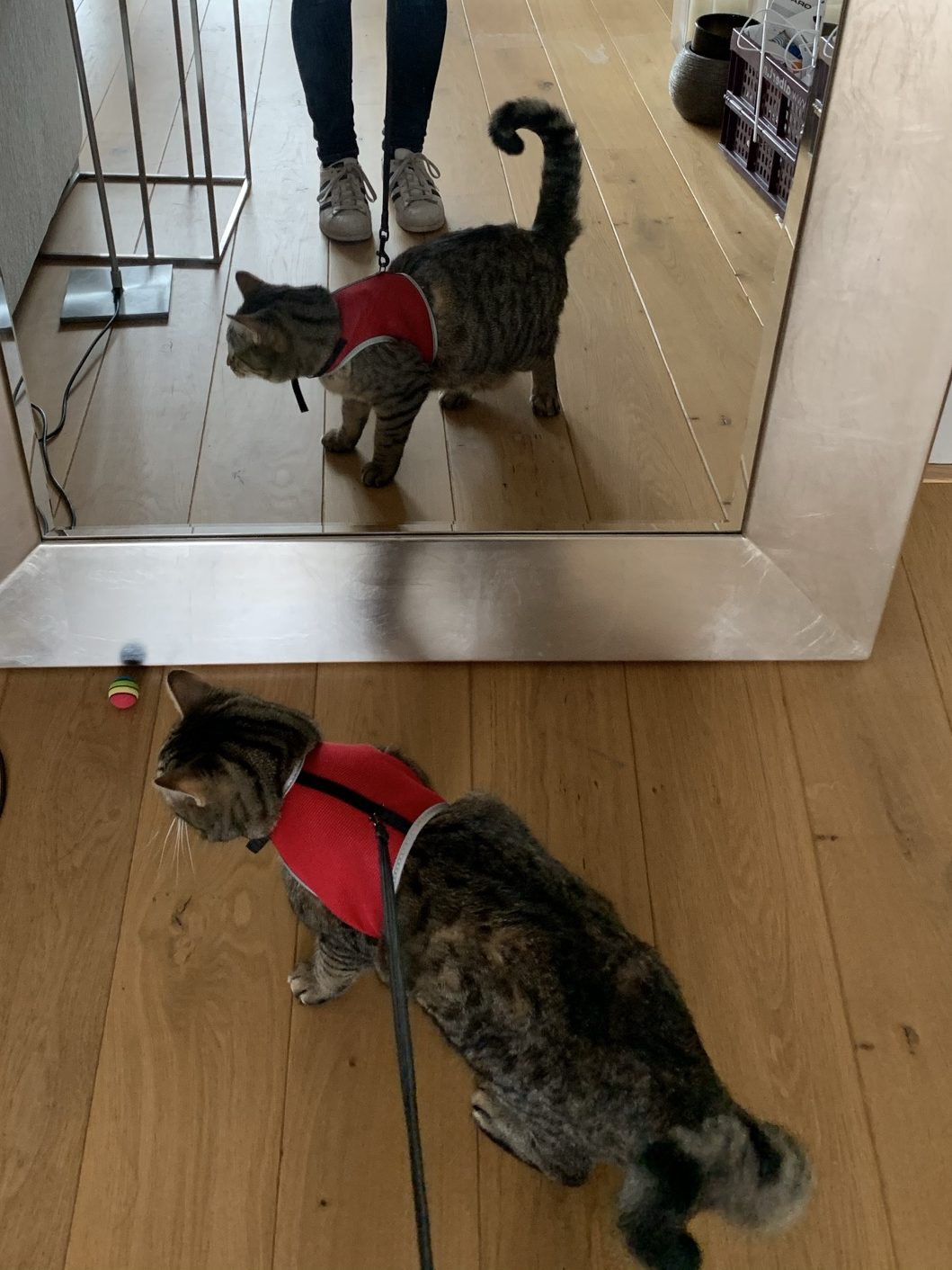 In our new apartment, we didn’t have a garden anymore. It made us sad for him, but we also said we wouldn’t live her for much longer than 3 years. After that, we would look for a house with garden and Simba could roam free again. But we tried letting him out on the leash near our house (it looks ridiculous, I know, but the things you do for your cat…)