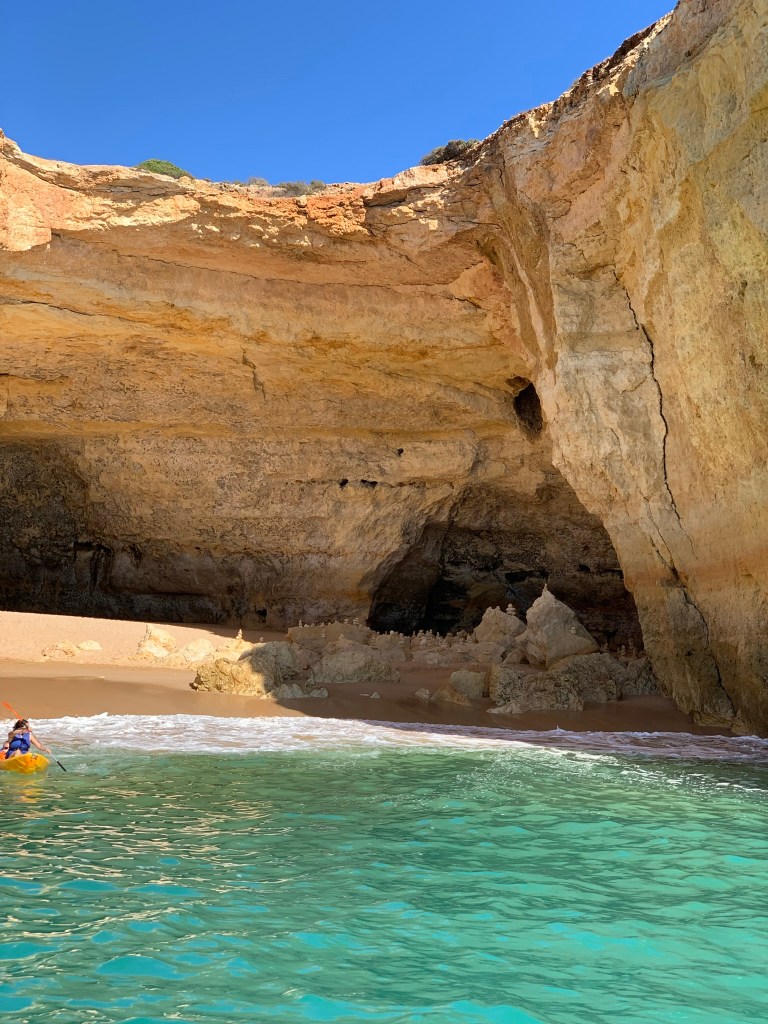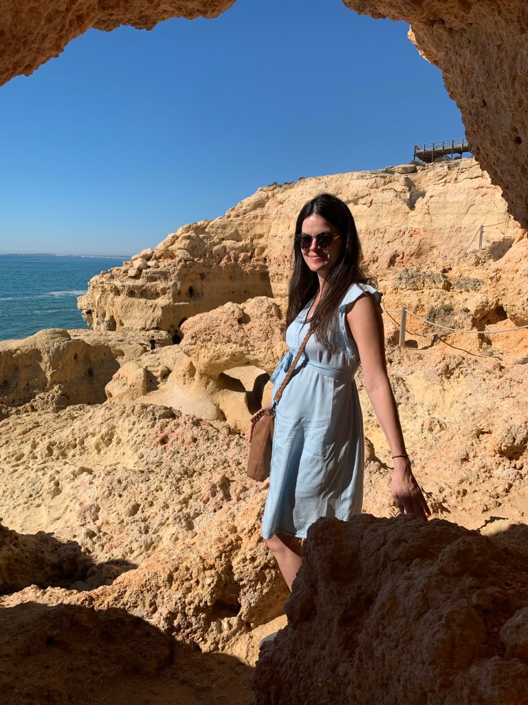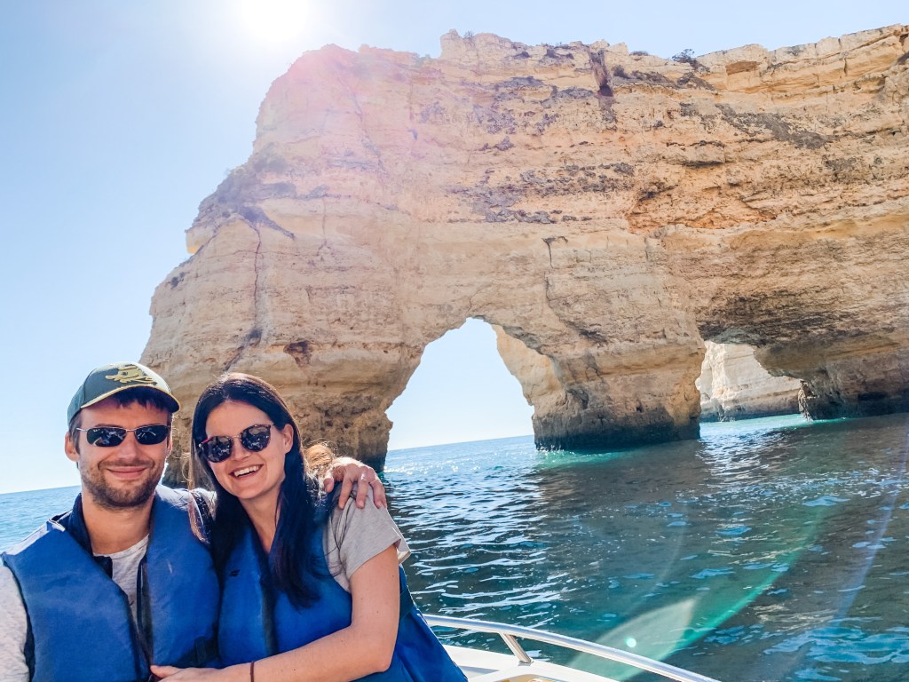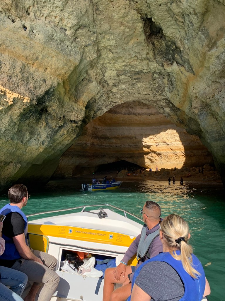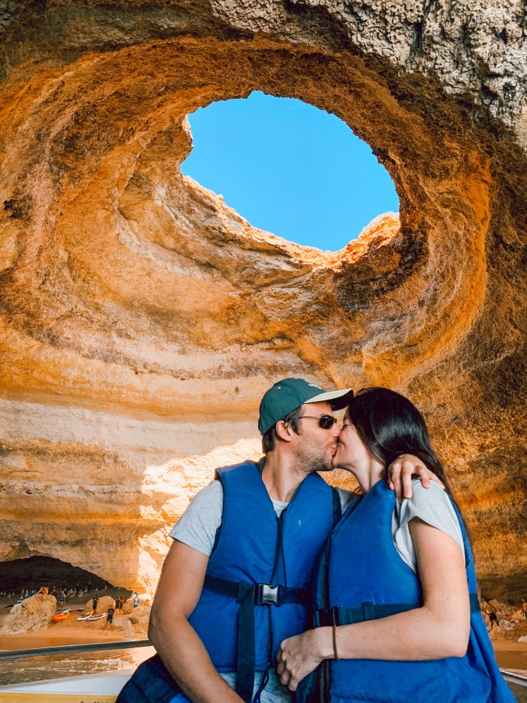 We wanted to go there by kayak (so we could really go into the cave and on the beach) but they would not allow me to rent a kayak because of my pregnancy. If the kayak would collapse and land on me, it could be dangerous. Pity, but I understand. So we booked a boat tour via Taruga Benagil Tours (can just be booked on Benagil Beach) for an Express visit. This tour takes you past 6/8 caves and they also take the time to take some pictures of you, which is nice!