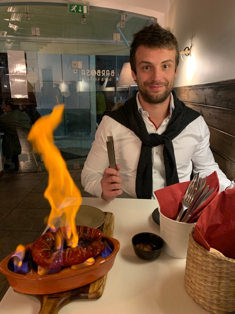 Whatever meal you are looking for – breakfast, lunch dinner or just drinks – they can hook you up. We were there for a quick dinner since we weren’t very hungry and shared a “Flaming Chorizo” – which is a very cool concept where you can basically BBQ it yourself π and then both just ate a burger. No-nonsense place with nice tapas and drinks.